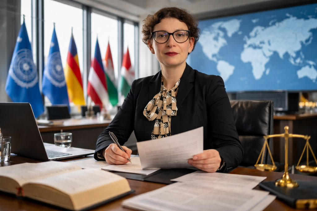 Her work in international organisations has included participation in legal advisory processes, institutional decision-making, and structured negotiations addressing complex legal and policy issues. She has engaged with representatives of states, international institutions, and expert bodies, supporting negotiations through legal analysis, procedural guidance, and consensus-oriented dialogue.